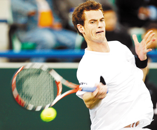 1月3日,英国选手穆雷在比赛中回球。当日,在阿布扎比网球表演赛决赛中,英国选手穆雷以2比1击败西班牙选手纳达尔,夺得冠军。 新华社发