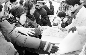 在近日启动的商水县“三下乡”活动中,该县卫生局积极组织医疗专家队伍送卫生下乡。图为医疗专家在位集镇为群众义诊并赠送医疗保健知识手册和宣传挂历。(张丽娟 摄)