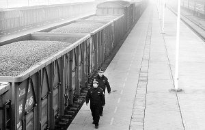 入冬以来,周口地方铁路派出所干警加强对铁路沿线的巡逻,确保铁路运输中货物安全,防止盗窃事件的发生。图为干警在货物停放处进行检查。