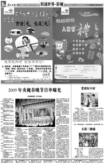 13日下午2时,2009年央视春晚第一次带妆联排准时开演。记者进入央视的一号演播大厅,观看了整场演出。尽管缺少了赵本山、黄宏、周杰伦等大腕的表演,但是杂技《抖杠》、《软功》、舞蹈《蝶恋花》、《牵手》除了给人带来视觉上的享受,也很感人。然而,这些节目的精彩也未能让总导演郎昆满意,因为真唱,众歌手走调、破音,状况连连。