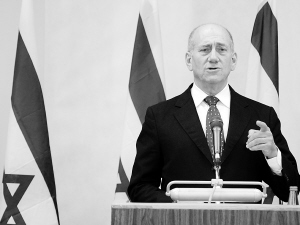 1月17日晚,以色列总理奥尔默特在特拉维夫参加安全内阁会议后举行新闻发布会,宣布在加沙地带实行单边停火。 新华社记者 殷博古 摄