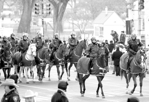 华盛顿举行奥巴马总统就职大游行 1月20日,美国国家公园局骑警方队参加游行。当日,美国首都华盛顿举行庆祝奥巴马总统就职大游行,约1.2万人组成的游行队伍从国会大厦出发,沿着宾夕法尼亚大街行进至白宫。 新华社记者 侯俊 摄
