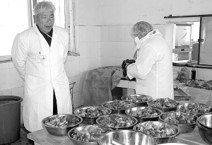 ③为使孤寡老人们吃上可口的年夜饭,邓城镇敬老院的厨师们早早做好了准备。