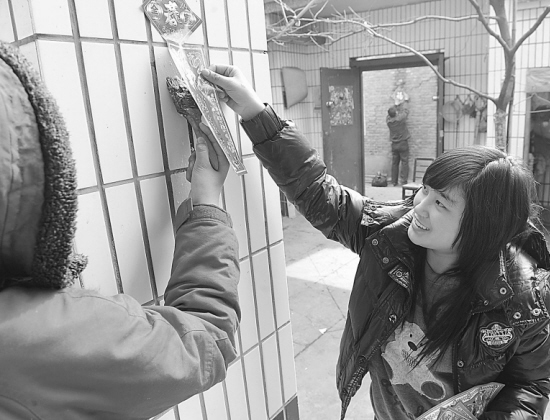 豫东人家贴年画迎春节 农历大年三十,豫东人家按照习俗,开始在门口院内贴年画、放鞭炮,欢庆农历牛年的来临。新华社记者 赵鹏 摄