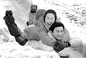 剧情介绍:艾雪是一个清纯中有点倔强的女孩。虽然只是滑雪场的一个临时教练,她阳光般灿烂的笑容却感染了很多人。一年一度的猛虎下山赛开始了,已经获得两次冠军的艾雪这次誓夺三连冠。艾雪的上司、银凯集团的副总经理肖冬儿也参加了比赛,为人霸道的她发誓一定要夺下冠军。一个是下属,一个是领导,善于奉承拍马、又诡计多端的文希礼自然不敢得罪不可一世的肖副总,何况肖冬儿还是董事长肖德荣的千金。肖冬儿在乎的不仅仅是一个冠军的头衔,她更在乎的是为冠军颁奖的人——肖冬儿心仪已久的白马王子、银凯集团新任总经理宫俊。肖冬儿暗自发誓一定要让宫俊为自己颁奖……