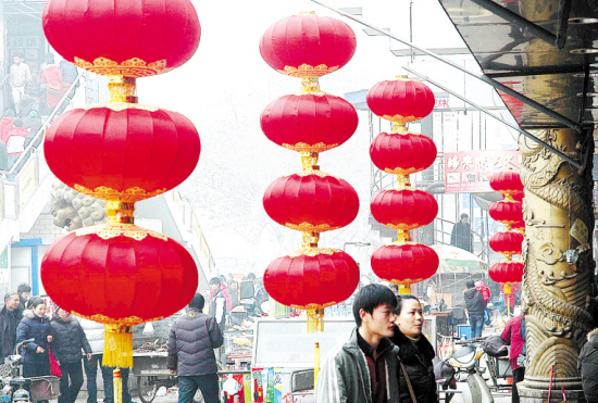 元宵节临近,不少商家挂起了串串红灯笼,营造喜庆的节日气氛。记者 王映 摄