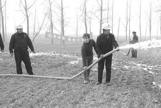 连日来,沈丘县组织电力部门充分发挥自身优势,积极投入抗旱保苗工作,在做好电力供应的同时,动员电力职工深入农村帮助农民群众抗旱浇麦。(张娜 摄)