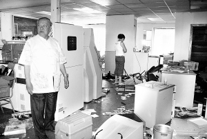 马达加斯加首都华商遭洗劫 2月8日,在马达加斯加首都塔那那利佛,店主在察看遭洗劫的华商图片洗印店。塔那那利佛两家华商在7日发生的大规模流血冲突中遭到洗劫,损失惨重。新华社发