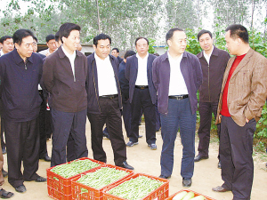 ——推进改革发展,着力抓好“三农”工作。要认真贯彻落实十七届三中全会精神,推进农村改革,促进新农村建设。在已有良好产业特色的基础上,重点抓好订单小麦经济、畜牧养殖经济、劳务输出经济、农民专业合作经济和农业循环经济五大特色经济,力争比上一年特色更突出、效果更明显。切实加强农业基础设施建设,实施农业综合开发,提高粮食生产能力,继续保持小麦亩产超千斤县。建立土地流转交易中心,构筑县、乡、村三级土地流转交易网络,鼓励农民以转包、出租、互换、转让、股份合作等多种形式流转土地承包经营权,对流转土地农民给予补贴,对具有一定规模、带动农户增收明显的专业大户、农民专业合作组织等规模经营主体给予扶持。要按照新农村建设的总体要求,因地制宜,搞好村镇规划,开展村容村貌整治和精神文明创建,改善环境 ,推进新农村建设扎实推进。