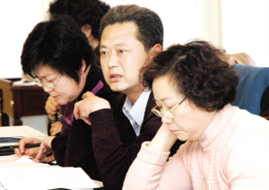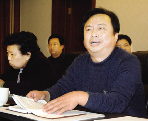 ①人大代表在驻地审议政府工作报告。 记者 李寒 摄