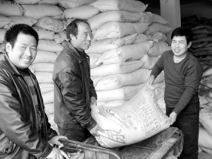 昨日,几位农民在购买尿素,准备给麦苗追施返青肥。目前,第一遍小麦返青水浇灌已结束,我市农民开始积极给小麦追施肥料,确保夏粮丰收。(记者 孙安平 摄)