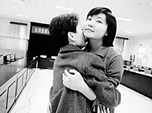 会议结束后,张笑被允许和母亲见面,母女俩紧紧地拥抱在一起。在接受采访过程中,乔女士拉住女儿的手一直没有松开。“其实上星期我刚来过一次,只不过是隔着玻璃。像这样面对面团聚,从她进来还是第二次。”