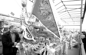 温州传统民俗“拦街福”拉开帷幕 2月25日,温州市民参观雕刻精美的板凳龙。当天是农历二月初一,浙江温州传统民俗“拦街福”活动拉开帷幕。“拦街福”是温州地方性传统民俗活动,始于清代,从每年农历二月初一开始,城内主要街道将依次举行祈福活动,祈求风调雨顺、五谷丰登。 新华社发