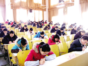 为增强教师学习意识,提高教师业务素质,促进教师不断提高教学能力和教学水平,郸城一高定期组织一线教师进行业务水平测试。图为近日该校组织各学科教师进行测试的情景。(王雪涛 摄)