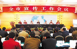 毛超峰在充分肯定我市宣传思想工作取得的成绩后指出,要认清形势,进一步增强做好宣传思想文化工作的责任感和使命感。2009年既是经济社会形势复杂多变、十分严峻的一年,又是宣传思想文化工作面临挑战、充满希望的一年。面对新形势、新任务和新要求,全市宣传思想战线要用更加宽广的视野来审视宣传思想文化工作,不断增强自身的政治意识、责任意识、大局意识和忧患意识,切实做好宣传思想文化工作。