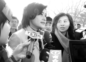 记者采访记者 3月5日,凤凰卫视主持人吴小莉在北京人民大会堂东门外广场接受记者采访。 新华社记者 谢环驰 摄