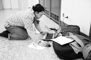 争分夺秒抢新闻 3月5日,十一届全国人大二次会议开幕前,拿到大会文件的记者争分夺秒抢发新闻。 新华社记者 陈树根 摄