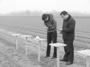 2009年,河南省烟草行业病虫害测报中心测报点设在周口鹿邑,鹿邑县烟草局高度重视,组织专门测报员负责此项工作。图为工作人员在进行监测。