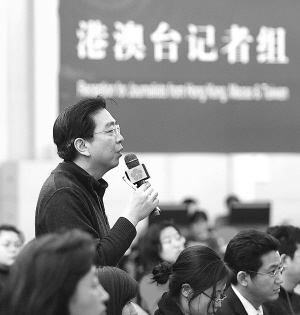 文化部有关负责人接受专题采访 3月12日,十一届全国人大二次会议新闻中心举行“文化市场与文化产业发展”专题采访,文化部有关负责同志在新闻中心接受中外记者的采访。这是一位来自台湾的记者在提问。 新华社记者 杨宗友 摄