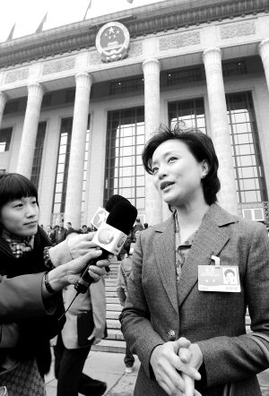 全国政协十一届二次会议闭幕 3月12日,中国人民政治协商会议第十一届全国委员会第二次会议在北京人民大会堂闭幕。这是全国政协委员杨澜会后在北京人民大会堂外接受采访。