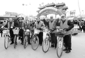 近日,来自漯河的老年自行车爱好者到达鹿邑县参加老子庙会,他们平均年龄60岁,退休后利用闲暇时间游览周边省市。“我们既锻炼了身体又愉悦了心情,一举两得。”组织者老张说。记者 沈湛 摄