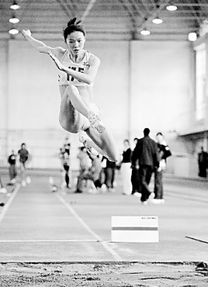 3月15日,在2009年全国室内田径锦标赛北京站女子跳远决赛中,谢荔梅以6米37的成绩夺冠。 新华社记者 张铎 摄