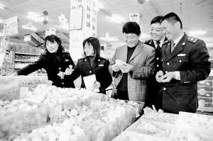 根据气温回升的实际,商水县工商局适时对辖区内各超市、零售批发点食品进行专项检查,确保换季期间食品卫生安全。记者 沈湛 摄