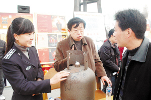 ▲昨天是“3·15”国际消费者权益日,我市各相关单位工作人员纷纷走上街头向广大消费者传授识假辨假知识,并接受市民的咨询和投诉。图为市质量技术监督局工作人员接受市民咨询。(记者 李寒 摄)