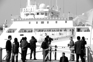 “大洋一号”完成我国第20航次大洋科考任务凯旋 3月17日,记者在码头拍摄“大洋一号”进港。当日,圆满完成我国第20航次大洋科考任务的“大洋一号”远洋科学考察船凯旋青岛。来自全国18家科研单位的114名科研人员同船回到祖国。据介绍,“大洋一号”自2008年5月22日起航以来,两度横跨太平洋和印度洋,历时300多天,累计航行达46000多海里,创下我国大洋科考时间最久、航程最长、成果空前的新纪录。 新华社发