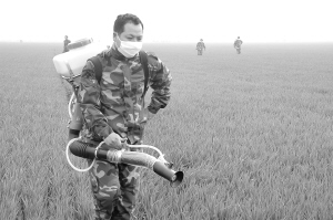 ▲昨日,西华县逍遥镇农民正在为小麦喷洒农药。日前,为了预防小麦白粉病、锈病、纹枯病,各县市区组织人员集中为小麦喷洒药物,为小麦增产增收打下了良好基础。