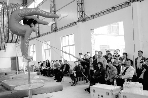 昨日,40多位全国杂技名家在我市杂技马戏团训练基地观看了杂技节目,并为小杂技演员们指导技艺。