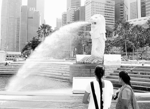 新加坡鱼尾狮塑像重新向公众开放 3月19日,一名男子在位于新加坡滨海湾富勒顿1号大厦旁的鱼尾狮塑像前为家人拍照留念。新加坡的主要标志与象征——位于新加坡滨海湾富勒顿1号大厦旁的鱼尾狮塑像在今年2月28日遭雷击损毁后于3月18日重新对公众开放,并于当天中午时分开始恢复喷水。新加坡境内目前共有5座鱼尾狮塑像,在雷击中受损的这座则是最著名也是最受欢迎的鱼尾狮塑像。这座于1964年首次亮相的塑像高8.6米,重70吨,狮身由混凝土制成,鱼尾狮的嘴里常年喷出一股水柱。 新华社记者 张永兴 摄