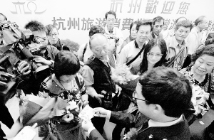 3月21日,来自杭州市政府的代表向台湾游客发放旅游消费券。据了解,针对台湾游客,杭州计划发放6万份总价值450万元人民币的杭州旅游消费券,台湾游客可持券在指定商家享受优惠。 新华社记者 黄深钢 摄