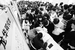 3月21日,殡葬业专场招聘会上摩肩接踵。