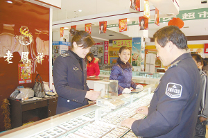 ▲近日,为确保消费者购买到足量的金银饰品,减少计量纠纷,维护消费者利益,鹿邑质监局组织计量人员对辖区内13家金银饰品经营单位进行一次计量专项检查,严把金银饰品计量关。(杨新才 摄)