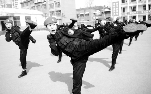 3月26日,女特警队员在进行格斗训练。针对全运会举办期间可能发生的各种突发情况,济南特警支队近期抽调23名女子特警,组建了“全运会女子特警队”,并进行射击、控制与反控制等科目的演练。