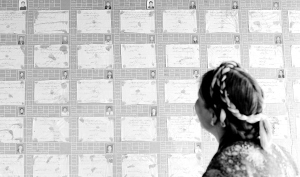 克松村一名村民在阅读村党支部所有党员的承诺书(3月23日摄)。
