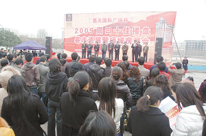 3月27日至29日,2009周口十佳楼盘县(市)巡展暨项城房展会在项城广场隆重举行。期间,来自周口、项城的20余家参展楼盘赚个盆满钵溢:据不完全统计,三日内房展会现场共约市民8万余人次参观展厅,现场成交楼盘26套,达成成交意向270组……