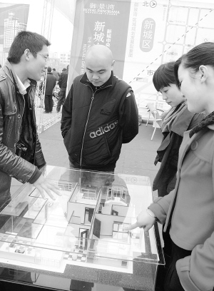 3月27日至29日,由周口市建委、周口日报社主办的2009周口十佳楼盘县市巡展在项城市举行。图为市民在楼盘模型前仔细观看。(记者 李寒 摄)