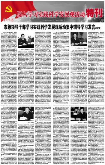 市级领导干部学习实践科学发展观活动集中辅导学习发言(摘要)