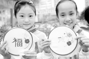 特色教育进校园 3月31日,湖北宜昌市实验小学的学生展示即将完成的土家刺绣。从2008年秋季开始,宜昌市实验小学将土家刺绣引进校园,并聘请土家艺人任教。 新华社发