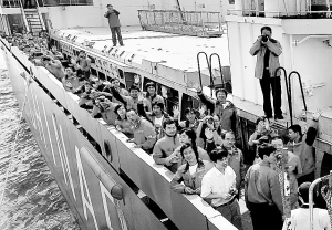 我国“雪龙”号极地考察船返回上海 4月9日,进入祖国领海的“雪龙”号极地考察船上的科考队员和船员向迎接的人们挥手致意。当日,“雪龙”号极地科学考察船抵达上海长江口锚地,标志我国第25次南极科学考察任务圆满完成。