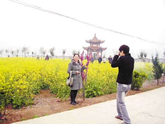 时下,春暖花开,正是人们游玩的好时节。图为游人在仙景纪念园里拍照留念。记者 王映 摄