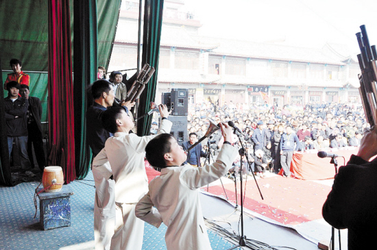 为传播优秀民族文化,弘扬民族精神,不断丰富人民群众精神文化生活,4月10日,鹿邑县在弘道苑广场举行了唢呐演奏比赛。陈海棠 摄