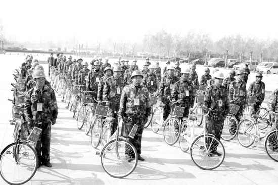 近日,川汇区组建的有50名队员参加的自行车专职巡逻队正式上岗。自行车专职巡逻队员从晚上8点到次日早上5点按辖区分路段巡逻,严防严控,遇到警情及时与辖区派出所或110指挥中心联系,最大限度地预防犯罪。 记者 王映 摄 线索提供:姚班廷