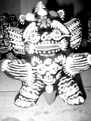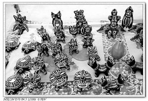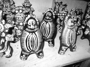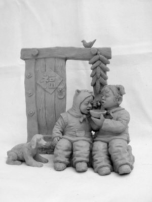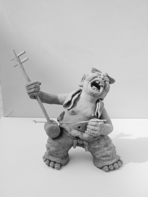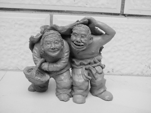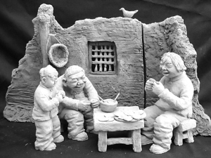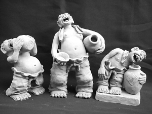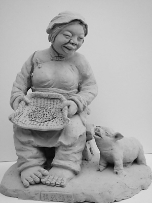 张振福的泥塑作品中有中国民间泥娃娃、布老虎的稚拙纯朴,有汉代雕塑的浑厚写意,有非洲木雕的原始粗犷,有欧洲民间木偶的异样夸张,有现代派的抽象表现,充满乡土气息,造型出神入化,例如《东家长西家短》、《乡村理发员》、《家乡戏》、《卖货郎》、《盛世欢歌》等。
