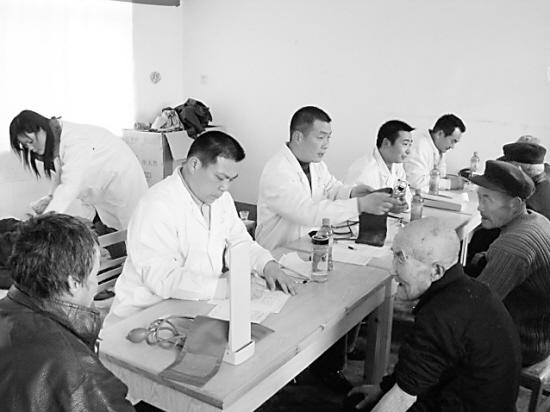近日,商水县城关乡卫生院组织10名医护人员来到该乡敬老院,为老人们进行血压、心电、血常规等多项健康检查,并免费发放了价值2000元的常用药品。(张丽娟 摄)
