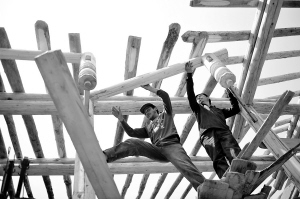 甘肃:灾后重建保持民族建筑风貌 4月22日,藏族村民在甘肃文县中寨乡花庄坝村建造新房。新华社记者 聂建江 摄