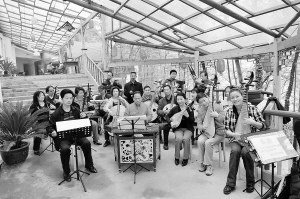 地震灾区蓥华镇里响起乐声 什邡市师古镇民乐队队员在蓥华镇云桦山庄里排练节目(摄于4月19日)。5·12汶川地震使四川省什邡市蓥华镇的房屋损毁、山体滑坡、道路不畅,没有了往日的热闹景象。一年来,蓥华镇在各级部门的努力和对口单位的帮助下加快重建步伐,各种娱乐休闲活动也随之增多,村镇正在逐渐恢复往日的生机。 新华社记者 何俊昌 摄