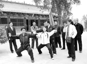 4月21日,在鹿邑县太清宫太极殿前,市太极拳协会会员应邀为游客表演太极拳。据了解,他们一行七人在刚刚结束的第七届香港国际武术节上取得了三金、两银、一铜的好成绩,为我市争得了荣誉。